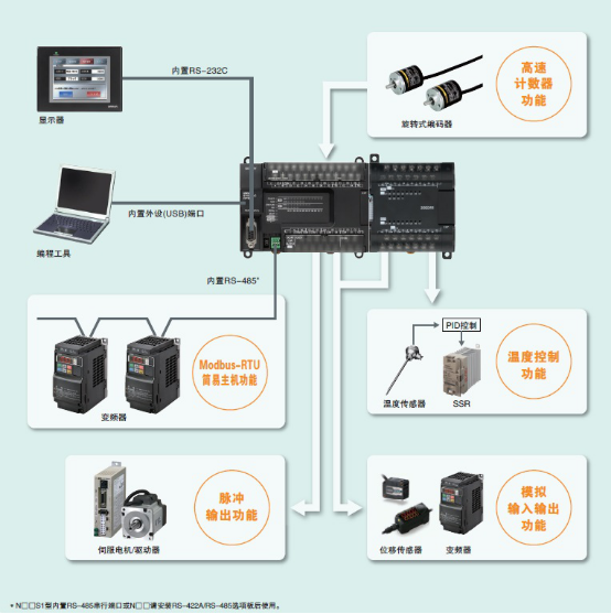 應(yīng)用機型(CP1E-N□□、N□□S(1))內(nèi)置高速計數(shù)器功能、脈沖輸出功能、串行連接端口。