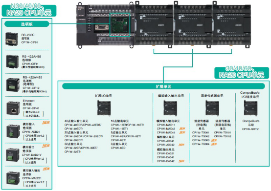 可擴展1個單元的串行選項板或Ethernet選項板。(N30/40/60、NA20 CPU單元)
